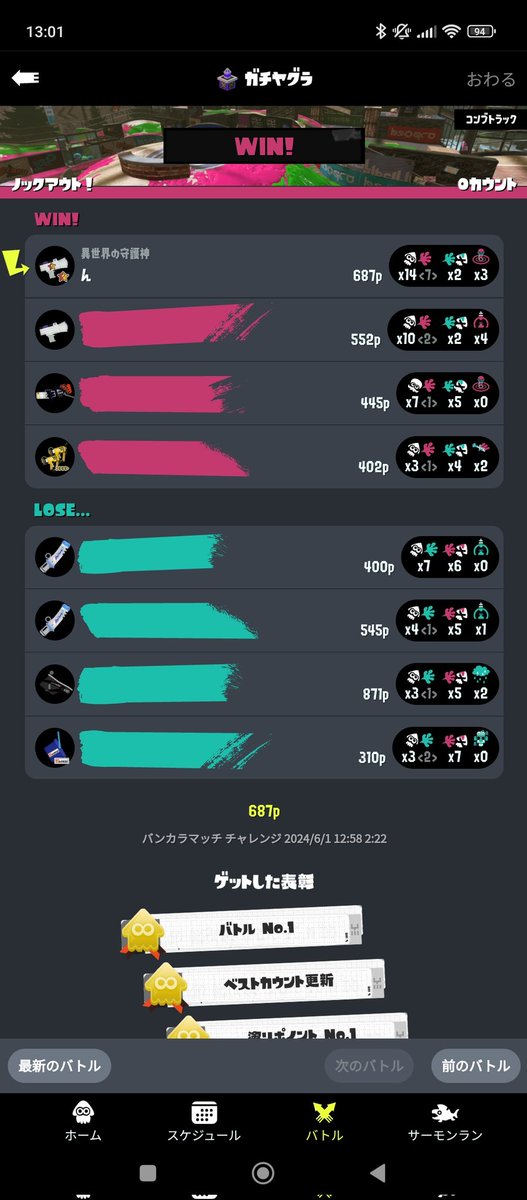戦犯になるとこだった勝ってよかった…バトルno.1でよかった…1周しちゃった(´>ω∂`)