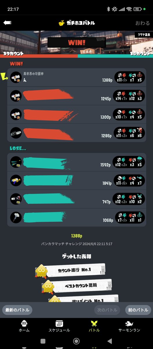 スプラ初めて1ヶ月くらいのやつなんか知らんけどずっと煽ってるしハンコおすボタンわからんくてずっとぶん投げてるさすがに成長した