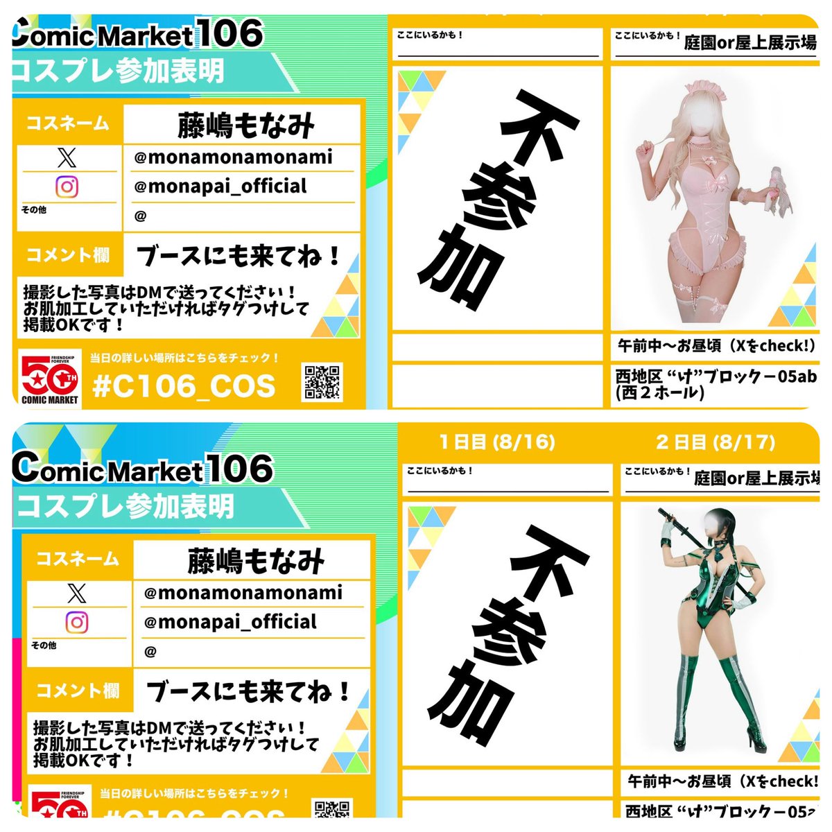 明日はチームセッション撮影会 ????#progressangels のレースコスチューム????と水着です????今回の為に????新しくしたよ✨️そして沢山のご予約ありがとうございます各部10人MAXかそれ以上のご予約頂いてます!嬉しいです????????????オフ会は若干空いてます♡詳細→オフ会も藤嶋もなみ推しで予約してくださいね????