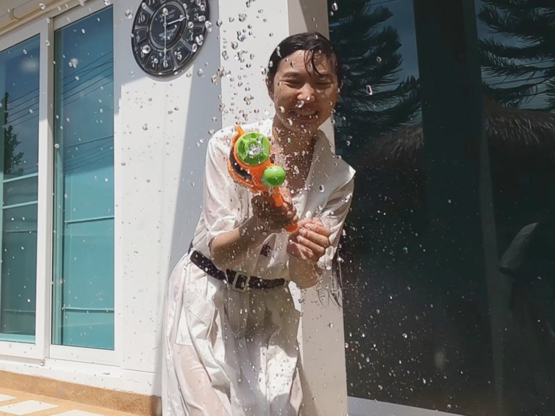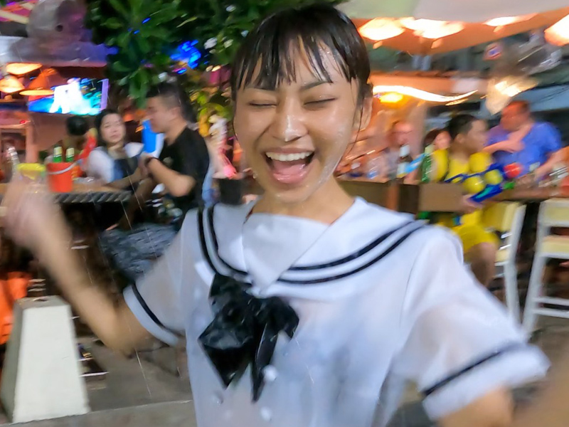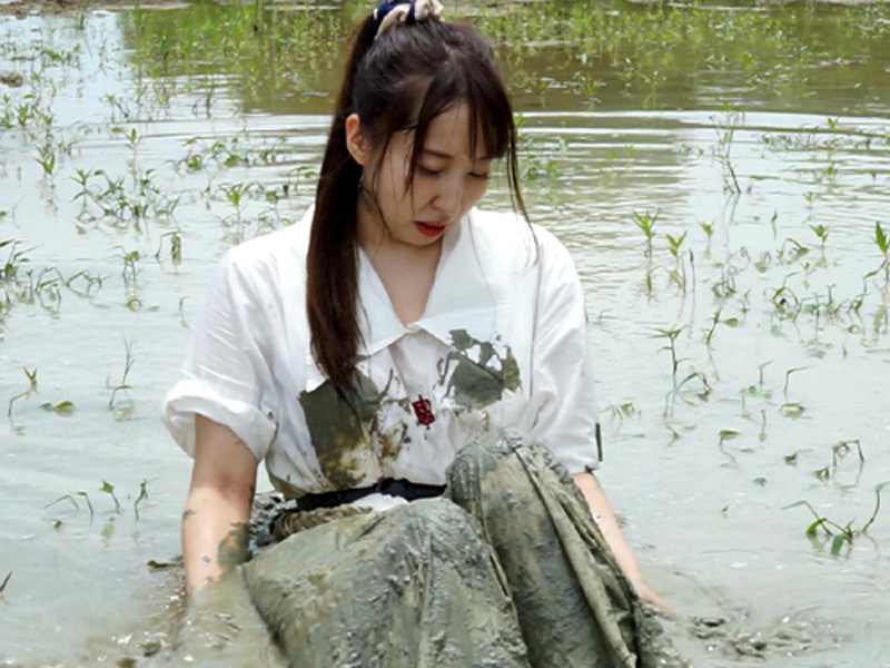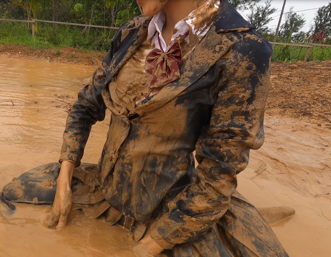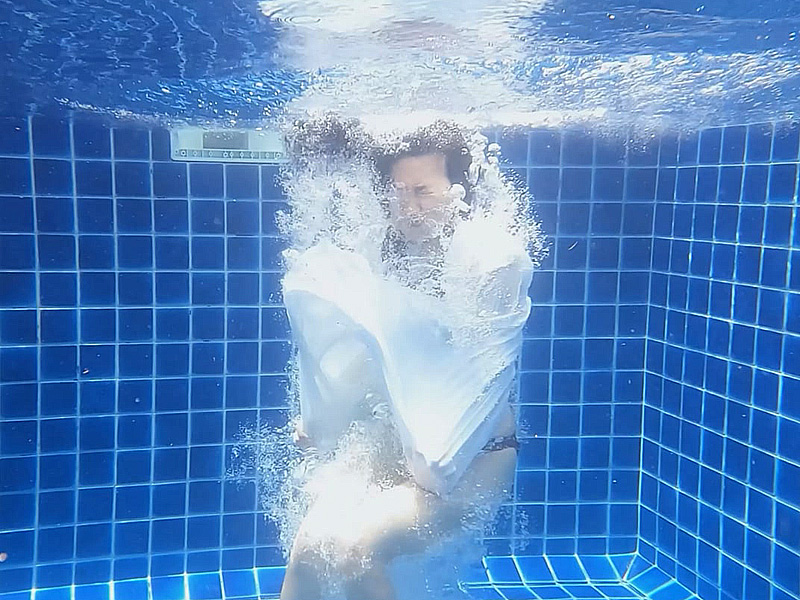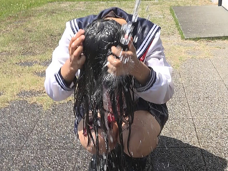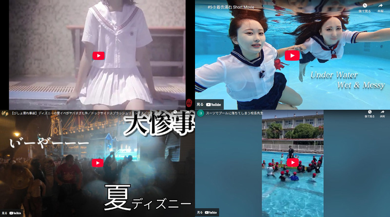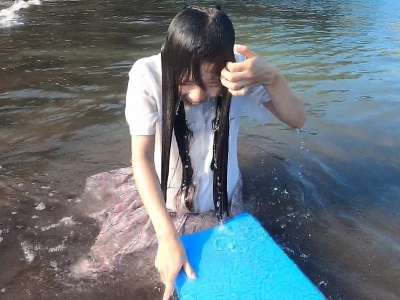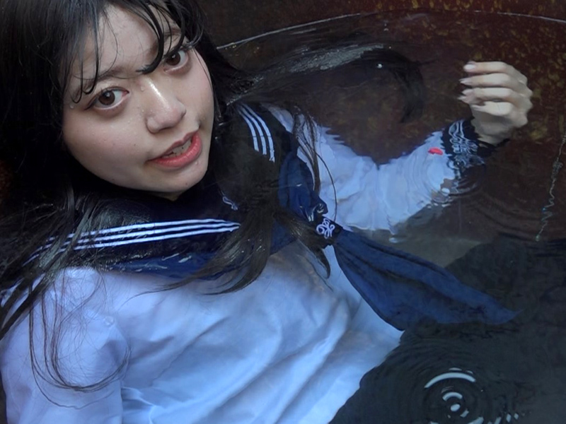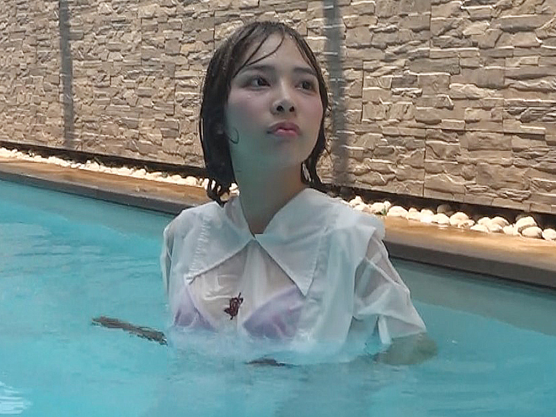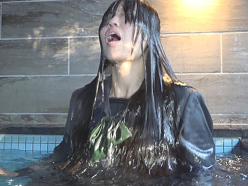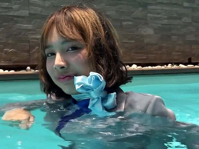 As she swims and dives in the uniform, it gradually becomes disheveled, while her wet hair clinging to her face adds another striking highlight to the video.