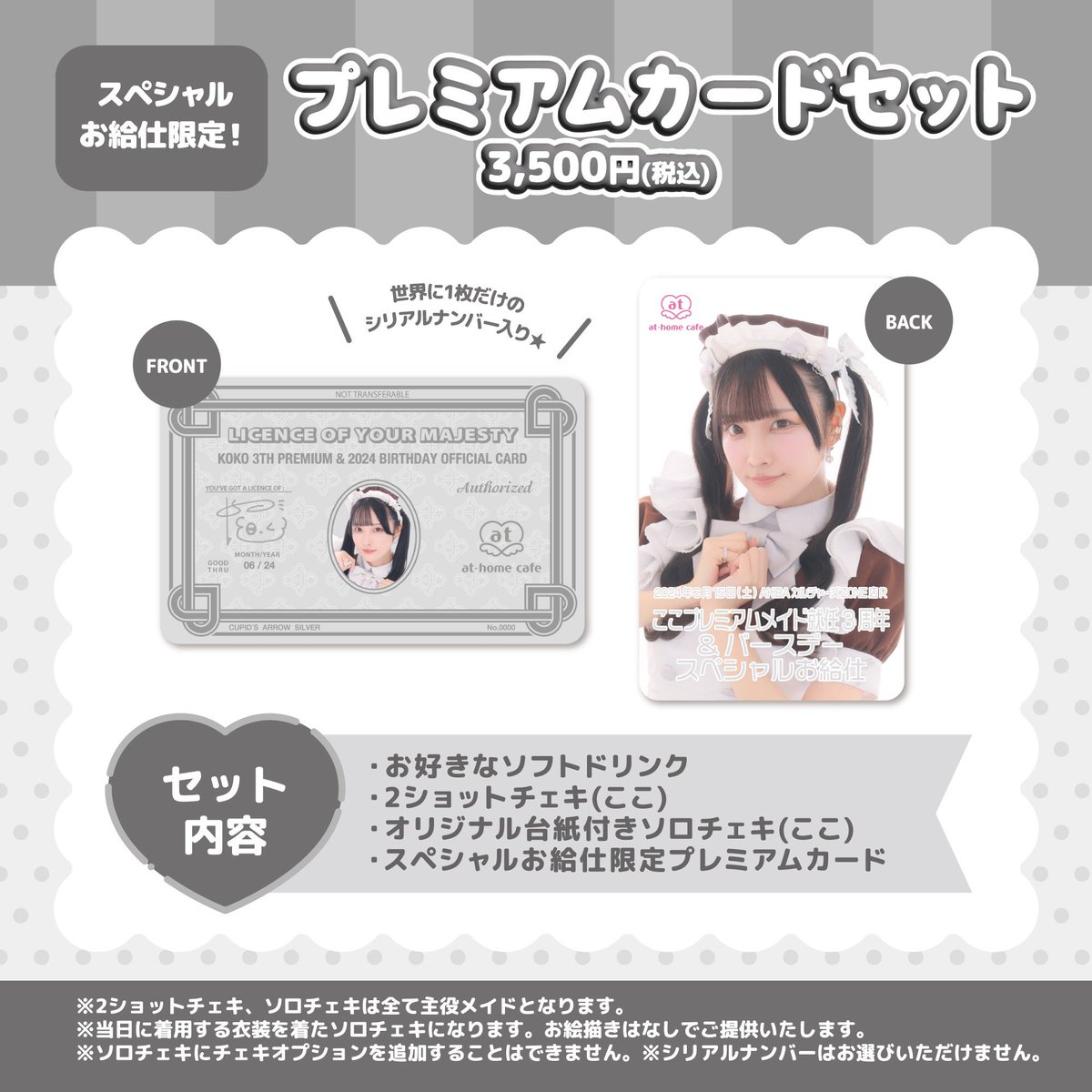 言うの忘れてたけどコース➕こことの記念撮影でメイドカード渡せます????