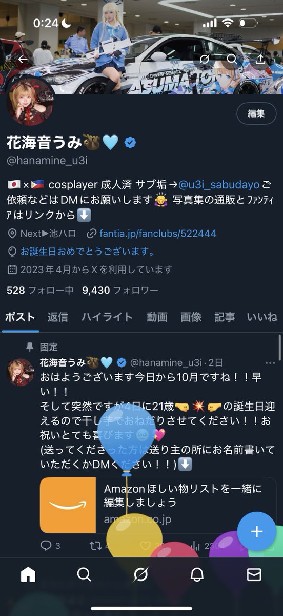 花海音うみ(@hanamine_u3i)さんの投稿データ集計