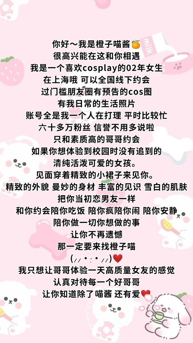 关于本人橙子喵酱✨ (绝对本人见面不是退门槛!线下一日女友绿单门槛520/888/5888????+私人wx????购入写真/微信:https://t.co/OzpREJXR1W