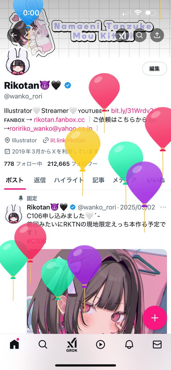 多分ここ2〜3ヶ月でアルゴリズムが劇的に変わってて今までイラスト伸びてた人でも明らかにいいねとかインプが伸びづらくなってる気がする…(人によるけど)