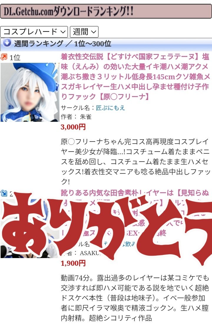「コスプレ同人AV」「貢ぎマゾ動画」を撮るマニア向けサークル。アニコス・ゲーコス、着衣、布萌え、CFNM、痴女。